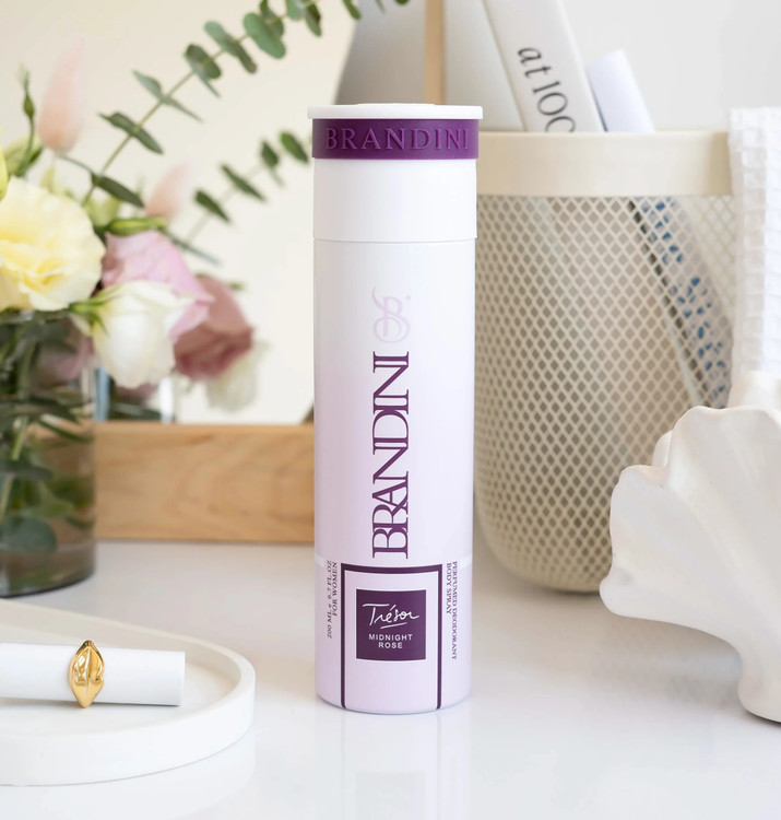 اسپری زنانه برندینی مدل Tresor Midnight Rose دارای گروه بویایی چوبی گلی و رایحه گرم و شیرین است که با رایحه عطر اصلیLancome Tresor Midnight برابری میکند. این محصول با ماندگاری 24 ساعته حاوی دئودورانت است و با باکتریهای سطح پوست مبارزه مینماید. با اولین اسپری روی پوست یا زیر بغل خود رایحه گل سرخ بلغاری و رازبری به مشام میرسد. پس از مدت کوتاهی نت میانی با رایحه برگ مو، گل صد تومانی، گل یاس و فلفل قرمز جای نت اولیه را میگیرد. در پایان و با خودنمایی نت آخر رایحه مشک، وانیل و سدر به مشام شما خواهد رسید. گفتنی است این محصول فاقد الکل بوده و برای بانوان در فصول سرد یک انتخاب مناسب است. بعد از هر بار استفاده از اسپری بدن زنانه میتوانید از رایحه دل انگیر آن لذت ببرید. شما میتوانید با استفاده از آن، باعث افزایش اعتماد به نفس خود و لذت اطرافیانتان شوید