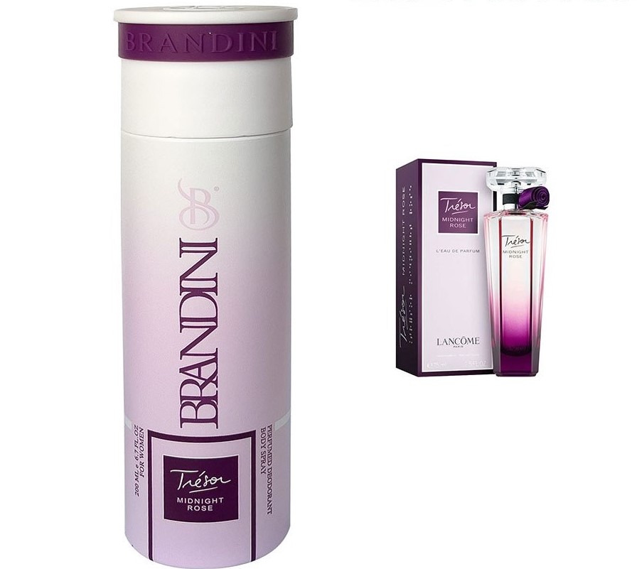 اسپری زنانه برندینی مدل Tresor Midnight Rose دارای گروه بویایی چوبی گلی و رایحه گرم و شیرین است که با رایحه عطر اصلیLancome Tresor Midnight برابری میکند. این محصول با ماندگاری 24 ساعته حاوی دئودورانت است و با باکتریهای سطح پوست مبارزه مینماید. با اولین اسپری روی پوست یا زیر بغل خود رایحه گل سرخ بلغاری و رازبری به مشام میرسد. پس از مدت کوتاهی نت میانی با رایحه برگ مو، گل صد تومانی، گل یاس و فلفل قرمز جای نت اولیه را میگیرد. در پایان و با خودنمایی نت آخر رایحه مشک، وانیل و سدر به مشام شما خواهد رسید. گفتنی است این محصول فاقد الکل بوده و برای بانوان در فصول سرد یک انتخاب مناسب است. بعد از هر بار استفاده از اسپری بدن زنانه میتوانید از رایحه دل انگیر آن لذت ببرید. شما میتوانید با استفاده از آن، باعث افزایش اعتماد به نفس خود و لذت اطرافیانتان شوید